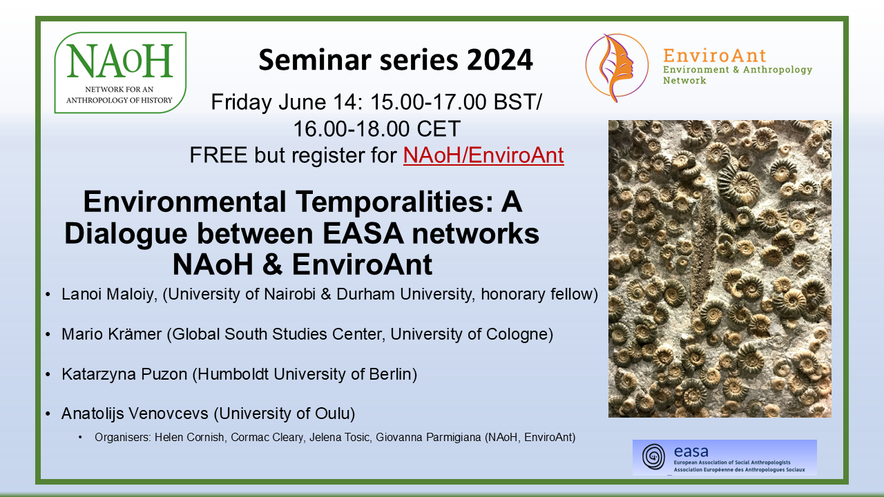 - Organisers: Helen Cornish, Cormac Cleary, Jelena Tošić, Giovanna Parmigiani (NAoH, EnviroAnt)